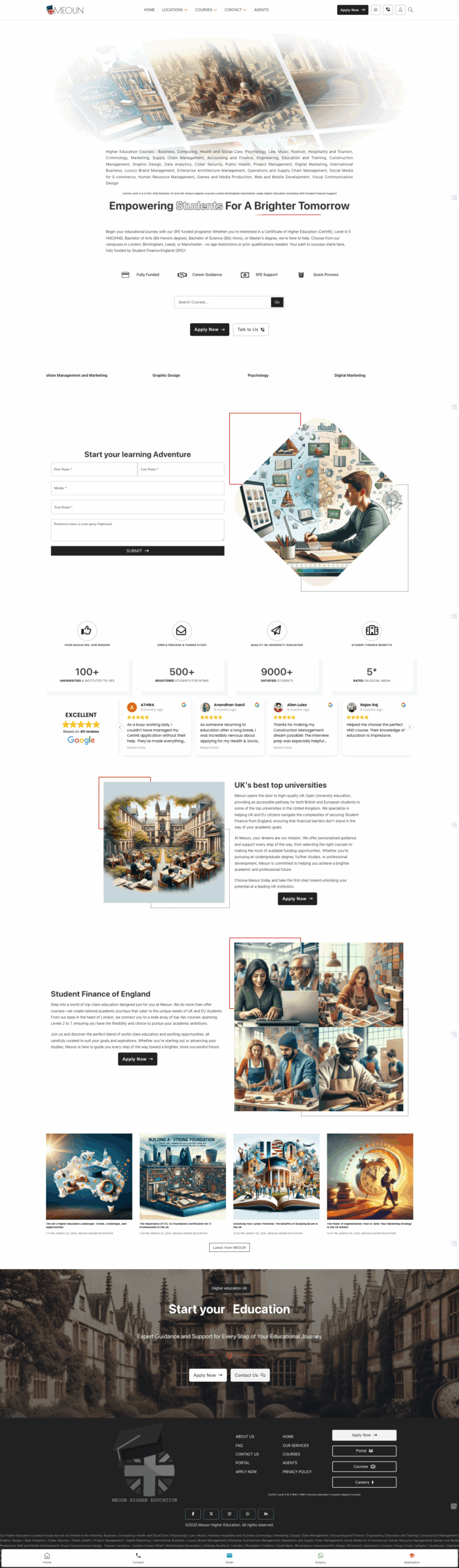 • Amplify visibility using SEO, ensuring learners find Meoun when searching for fully funded UK degrees, student finance, or course-specific guidance.