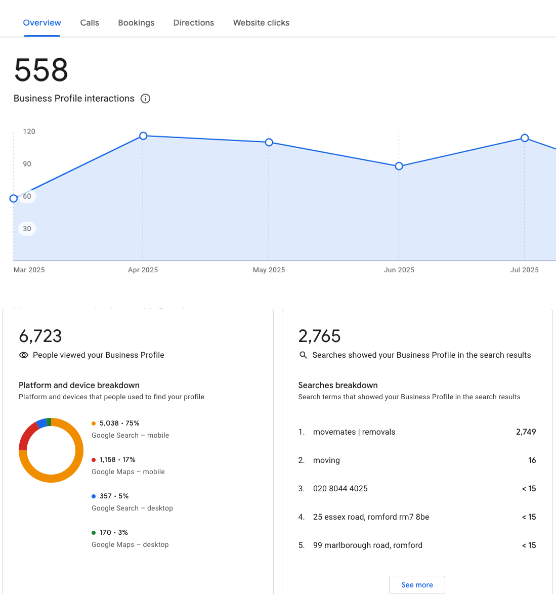 The GBP optimisation not only brought in direct leads but also boosted organic trust, making Movemates more likely to be chosen over faceless competitors.