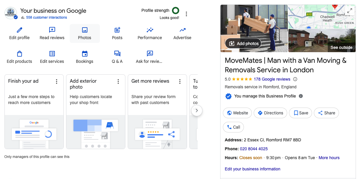 For service businesses, especially in a localised sector like removals, the Google Business Profile (GBP) can often make or break credibility. Movemates didn’t just create a profile—it turned it into a trust engine.