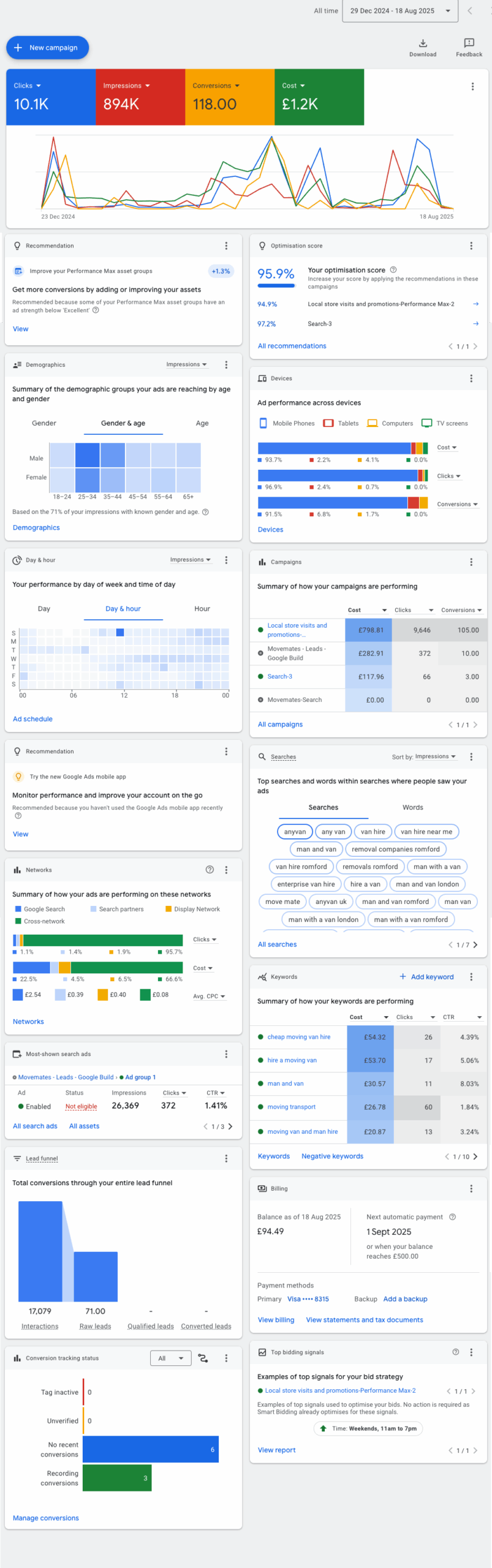What this really shows is that smartly structured campaigns can outperform heavy budgets. Instead of wasting spend on low-intent keywords, Movemates’ campaigns were built to capture people ready to book a mover.